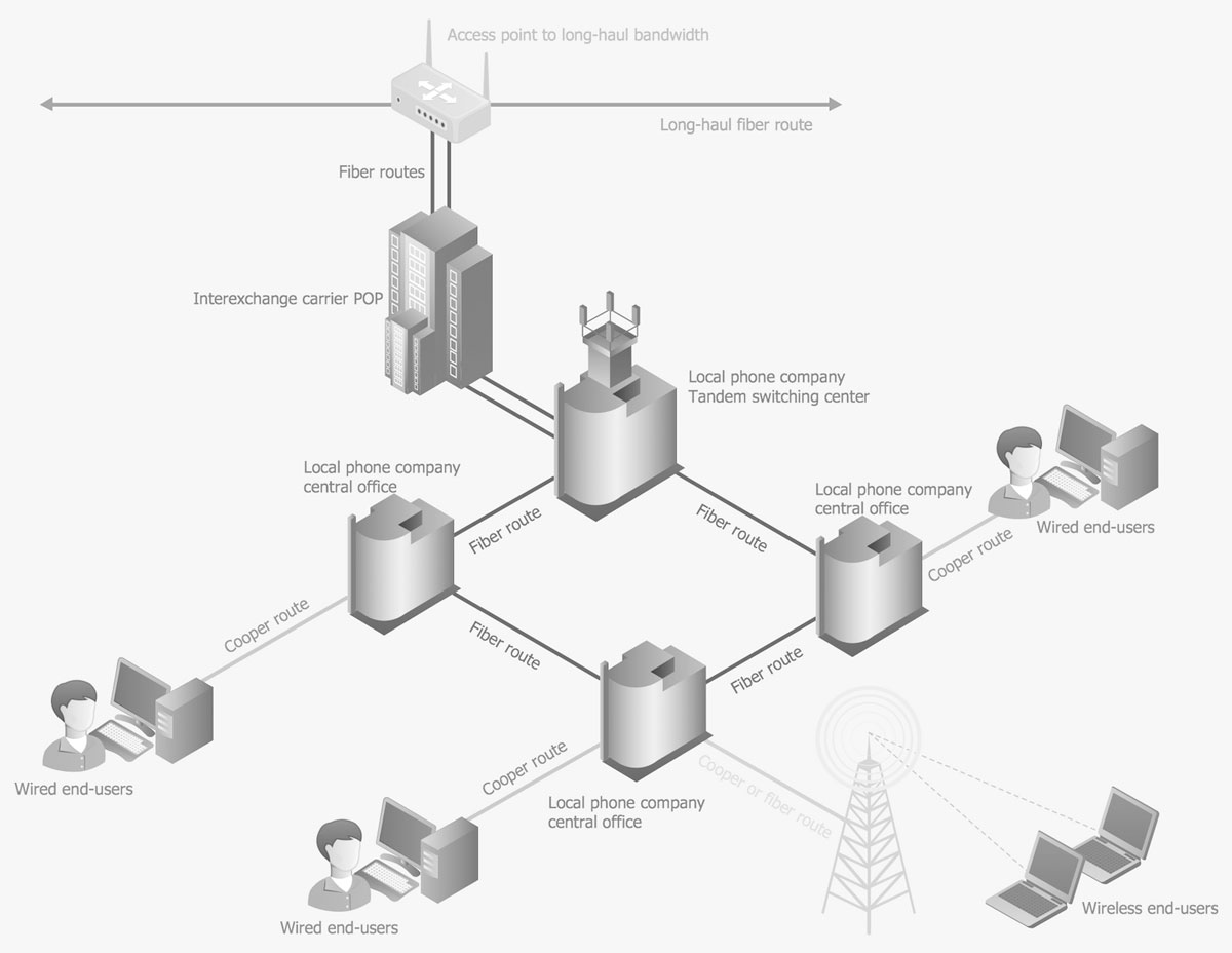 • Transmission medium: Optical fiber, usually buried underground or mounted on walls.