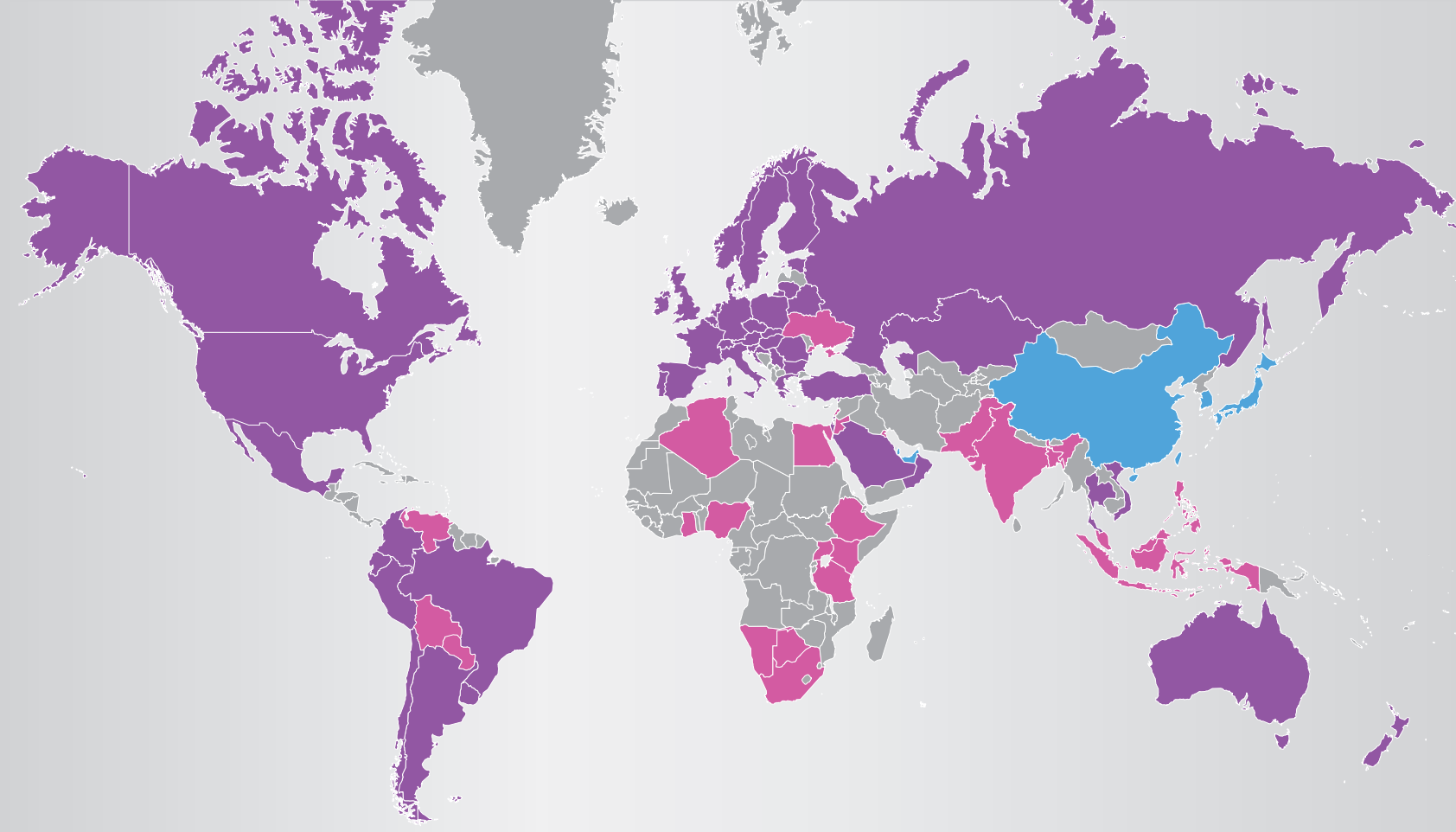 Do you know which countries and regions in the world have the highest and lowest development of optical fiber networks?