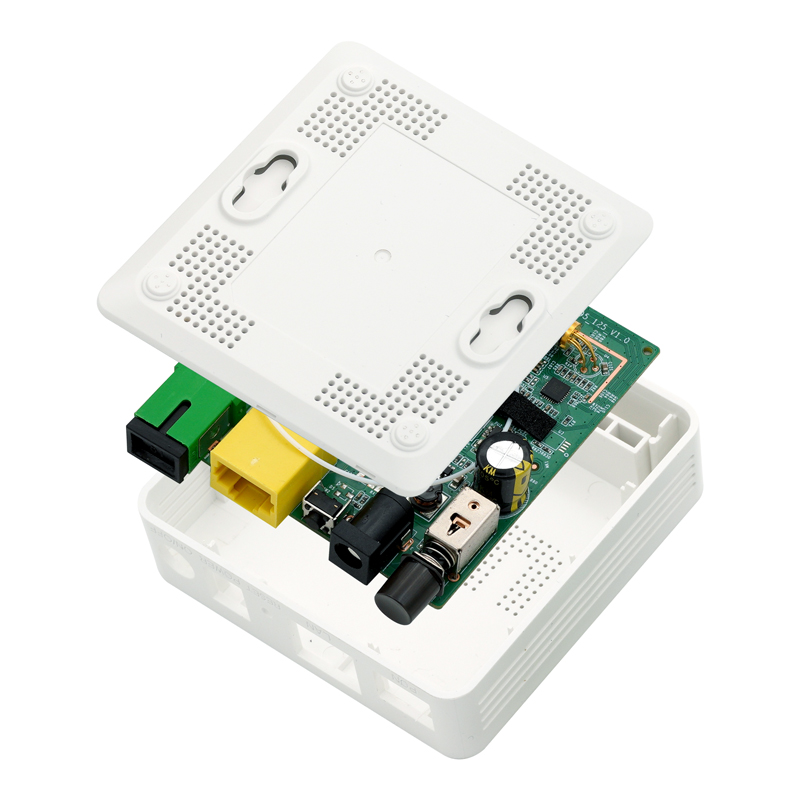 The G55 is a single-port GPON SFU that focuses on price/performance ratio as well as stability and practicality. It provides users with uplink optical access, adopts fiber optic cabling, signal transmission is not affected by electromagnetic interference, low BER, low latency, high transmission quality, and can better reflect the broadband performance. The product is small, green, low power consumption, RoHS compliant, cost-effective, easy to install and maintain. The appearance of the white shell, simple and bright.