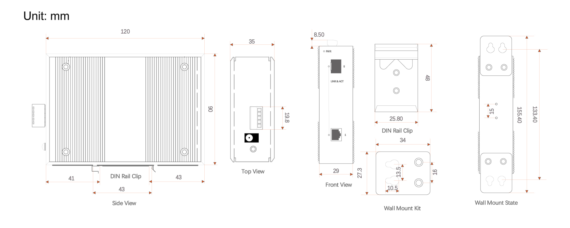 • Both DIN rail and Wall Mounting installation
